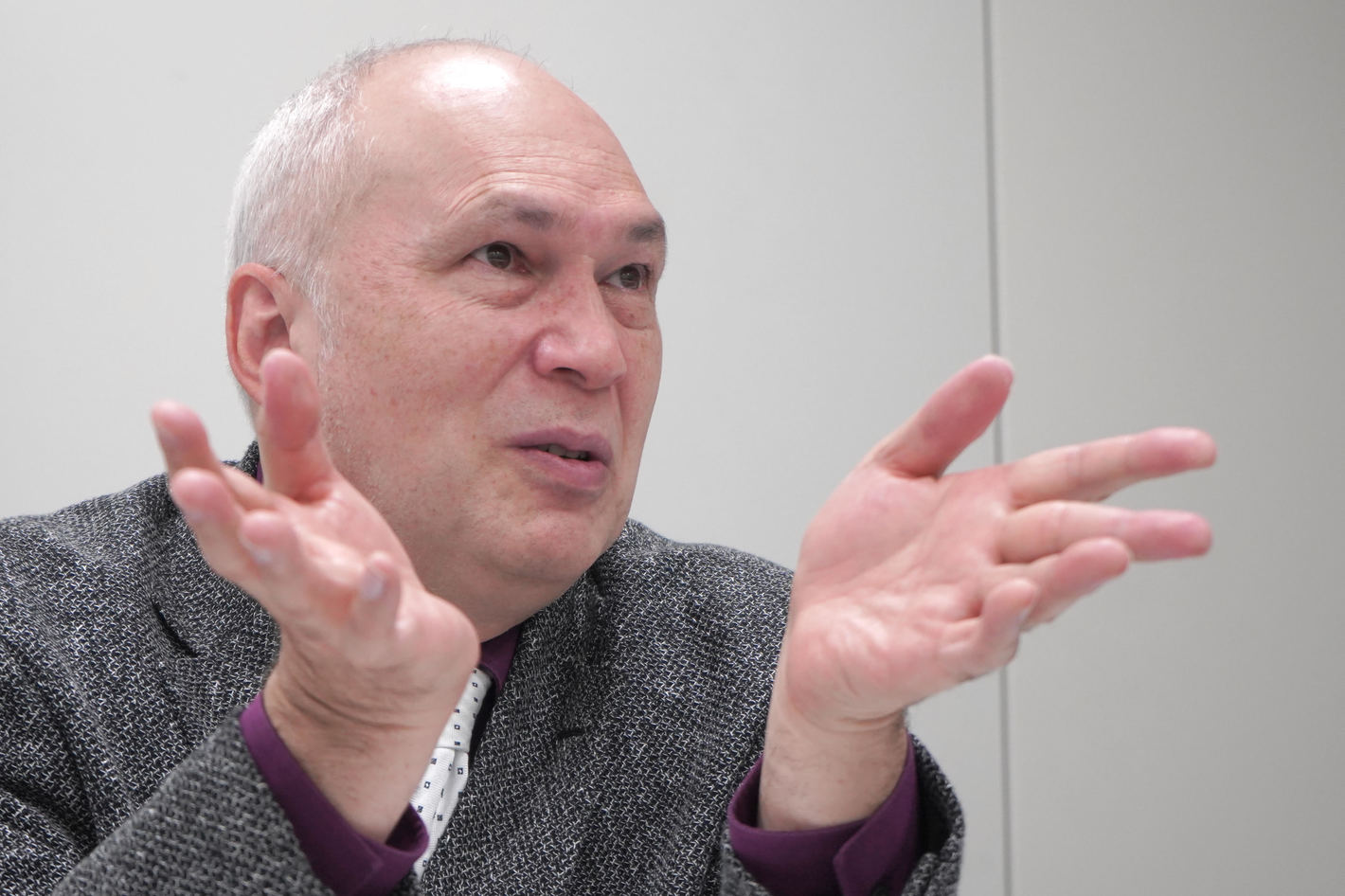 インタビューに応じるモーリー・ロバートソンさん