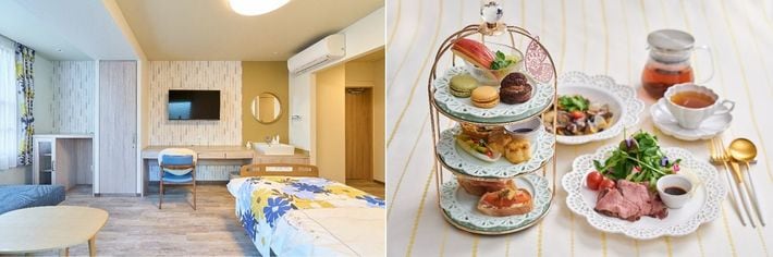 新しくできた産院の部屋の様子(左)、右は人気の食事