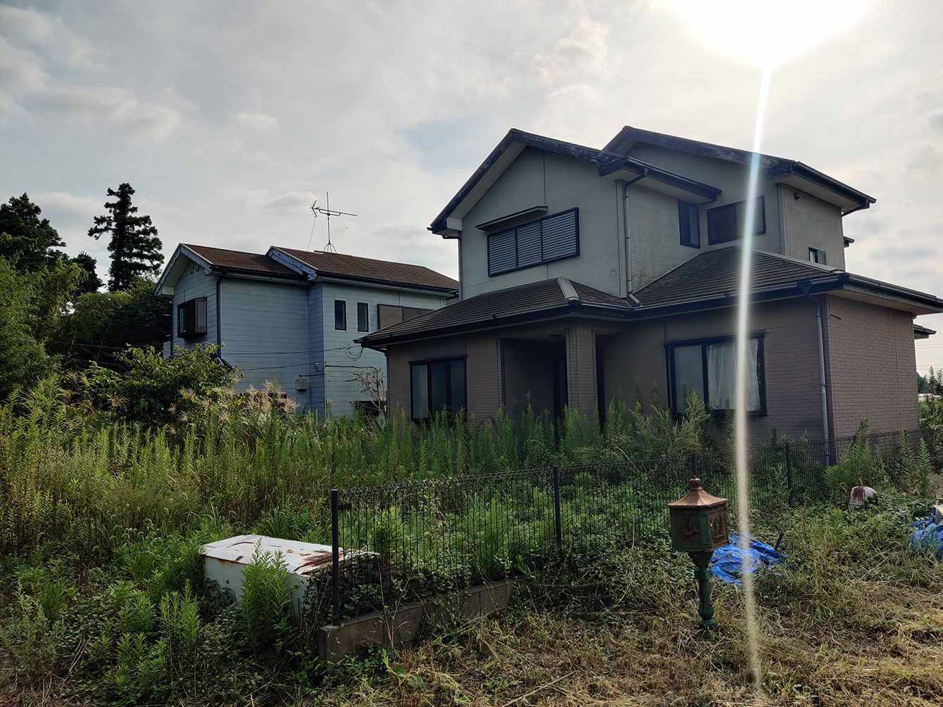 以前は「売物件」の看板が出されていたが、そのまま放棄された空き家。駐車場に生えた雑木が、放置されてからの長い年月を物語る。(千葉県成田市名古屋)