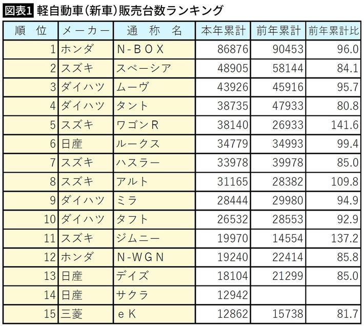 2022年4月~9月軽四輪車 通称名別 新車販売確報