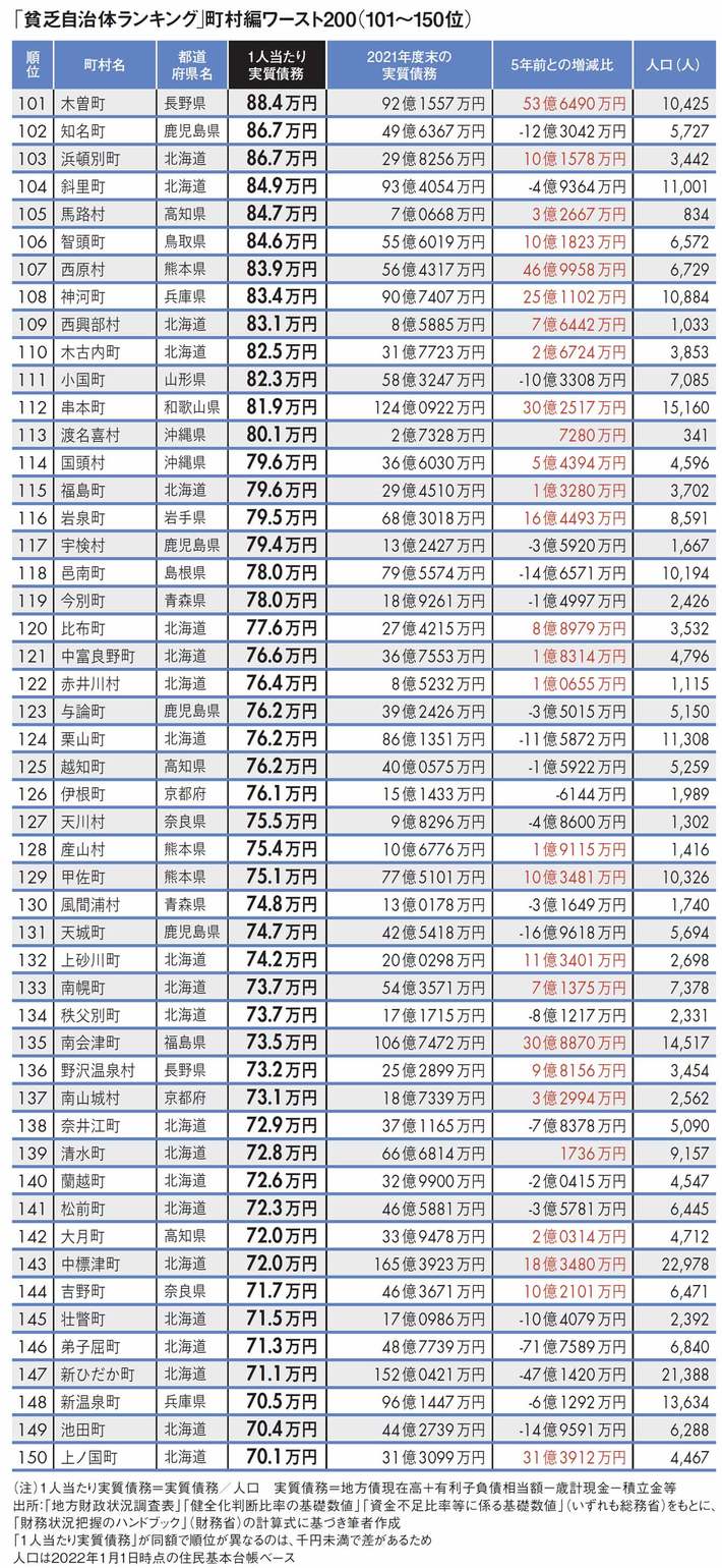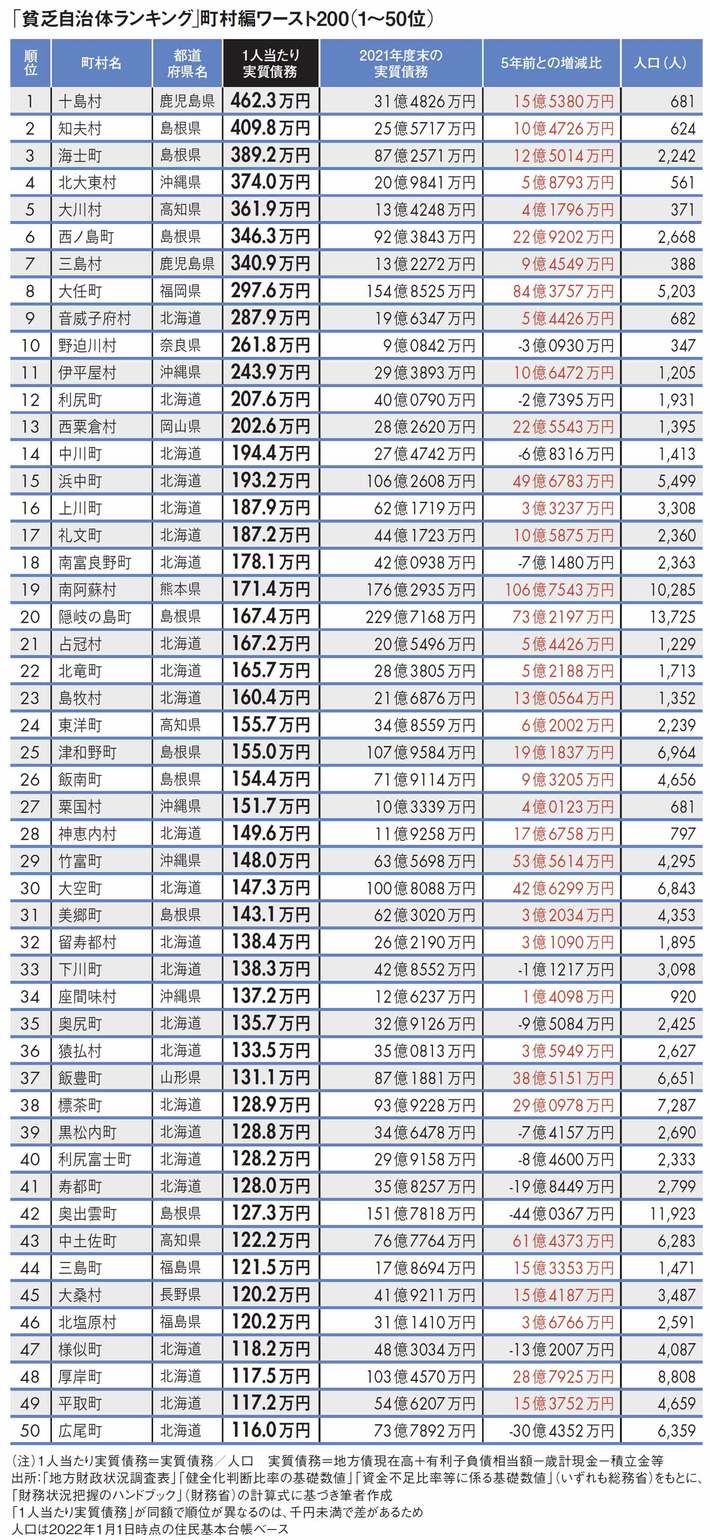 3位は島根県海士町、2位は島根県知夫村、1位は…「2022年貧乏自治体ランキング」町村編ワースト200