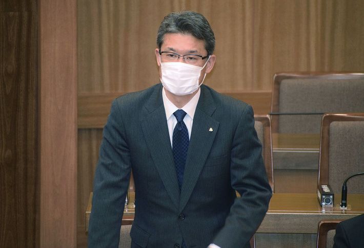 自身の行動歴に関する地元紙への情報提供を巡り、一連の経緯と自身の処分について県議会で説明する河野俊嗣宮崎県知事(=2023年1月20日午後、同県庁)