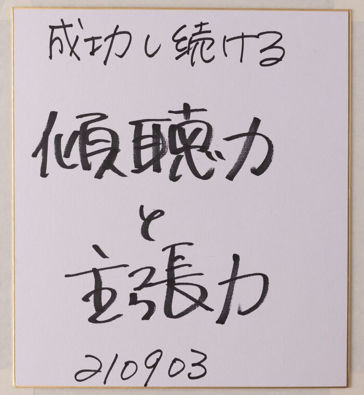 2014年にチェアマンに就任した村井満さん。任期最終年の2021年には毎週1枚の色紙を用意して、朝礼を開いた。