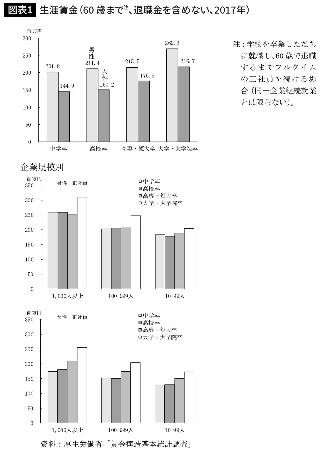 生涯賃金(60 歳まで(注)退職金を含めない、2017年)