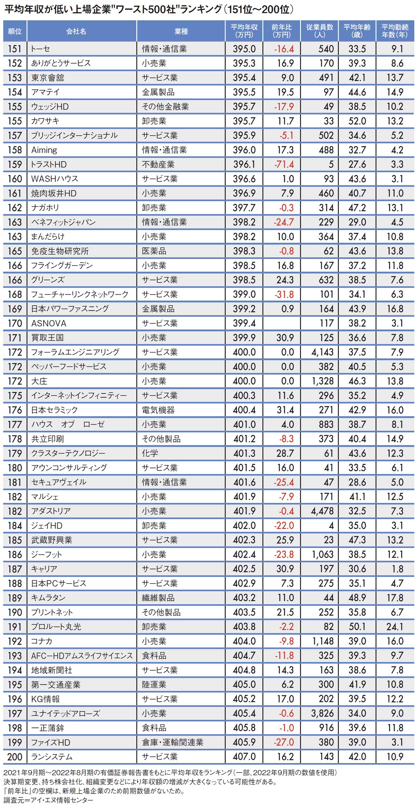 塚田農場の運営会社は286万円の年収減…平均年収が低い「全国ワースト500社」ランキング2022