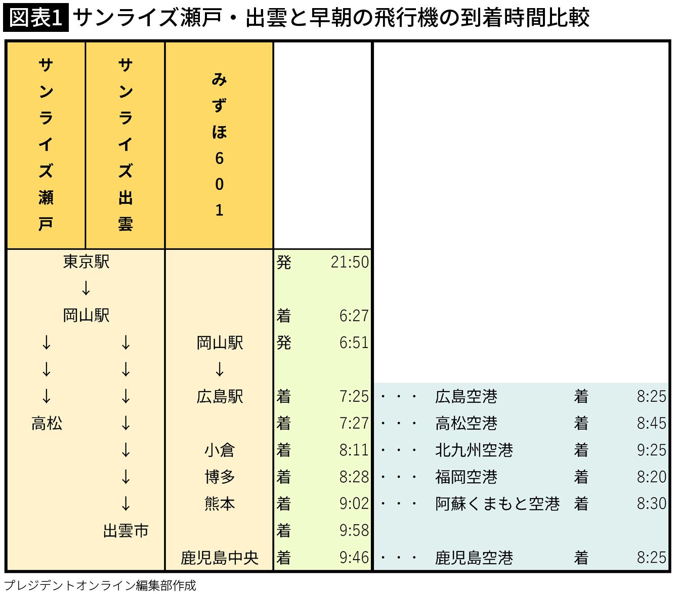 サンライズ瀬戸・出雲と早朝の飛行機の到着時間比較