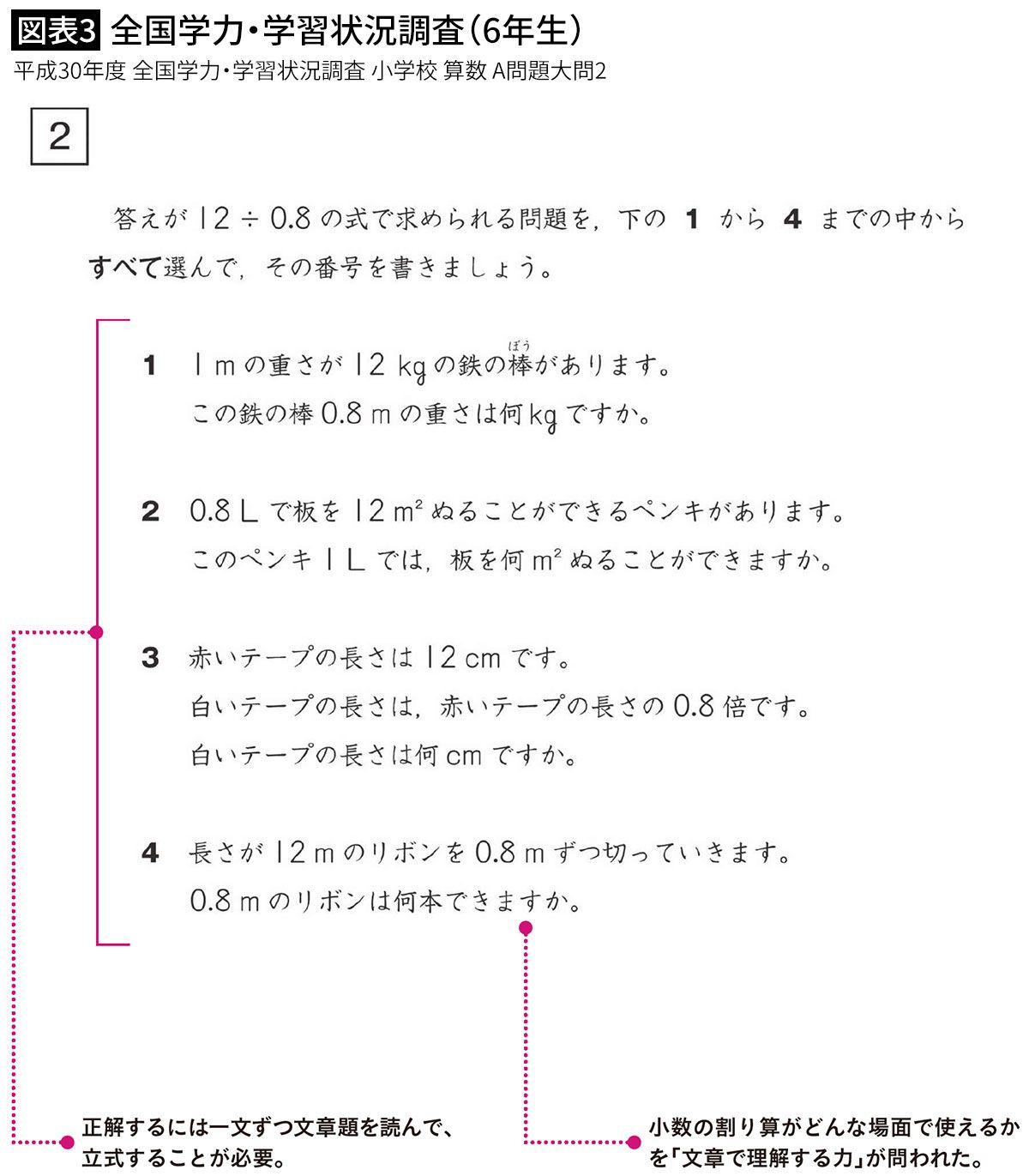 大人でもこんがらがる「1mで重さ12kgの鉄の棒、0.8m分は何kgか」の立式は12÷0.8か、12×0.8かすぐ答えよ