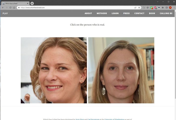 ワシントン大学の研究チームが作ったウェブサイト「どっちの顔が本物?」