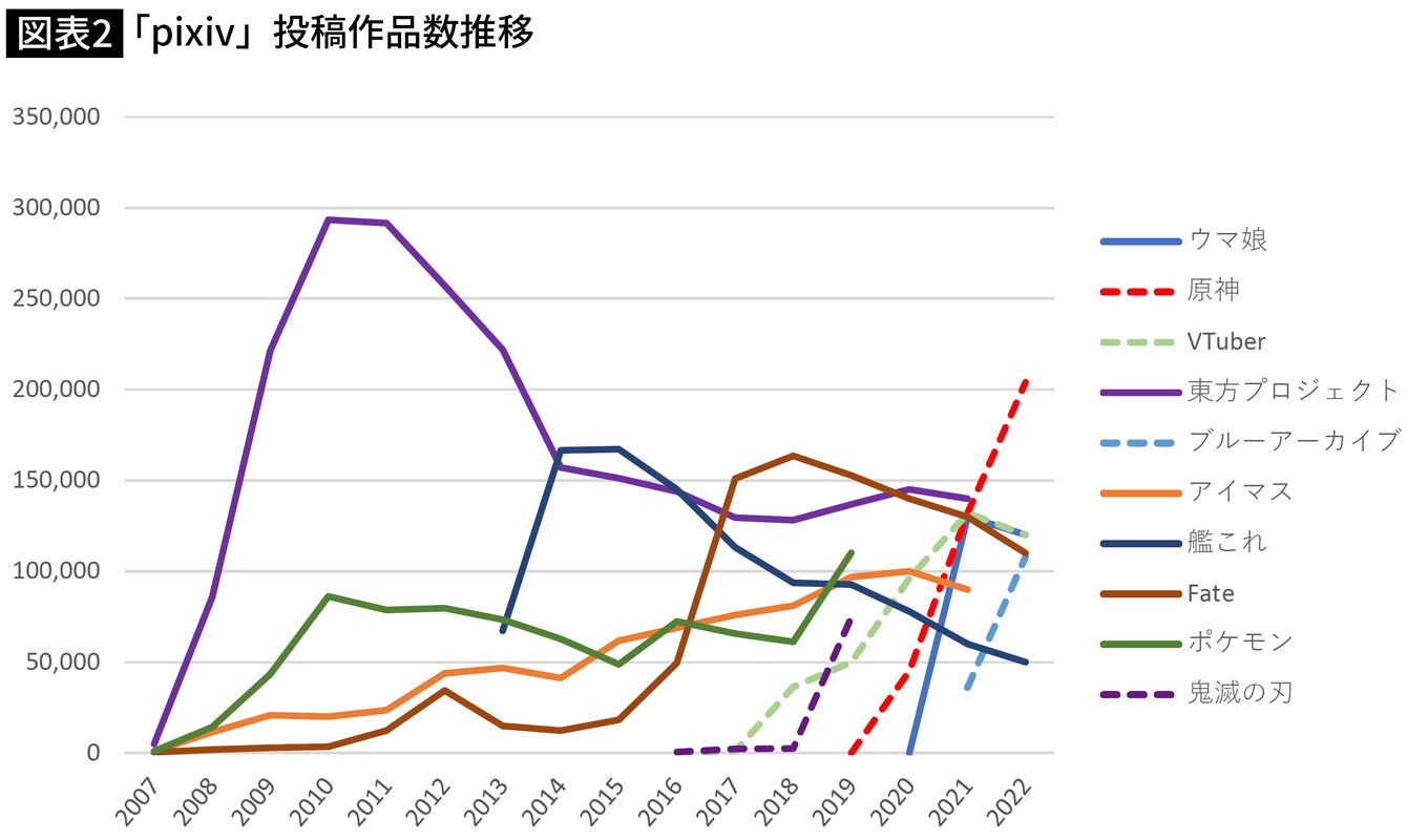 出典=「pixiv年間(β)」「pixiv 年間投稿タグランキング」などから著者作成