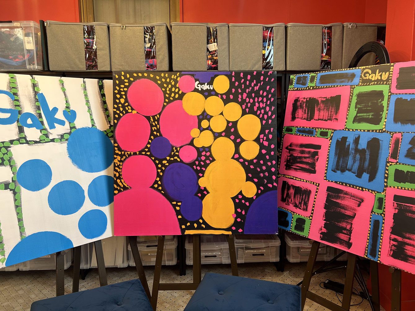 笑顔で作業するGAKUさん。今では年間200枚の絵を描くという