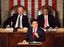 2015年4月29日、米国連邦上下両院合同会議で演説する安倍晋三首相。地球儀を俯瞰しつつ現実に目を向け、防衛力を高めた。(アフロ=写真)