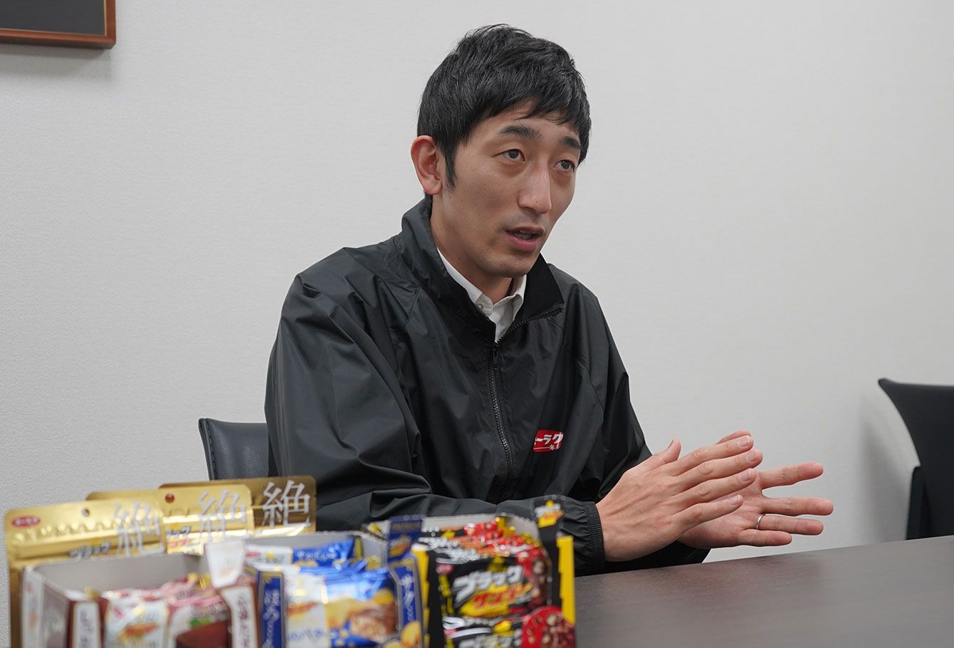文字通り「ブラックサンダー」を背負って立つ河合社長(撮影=プレジデントオンライン編集部)