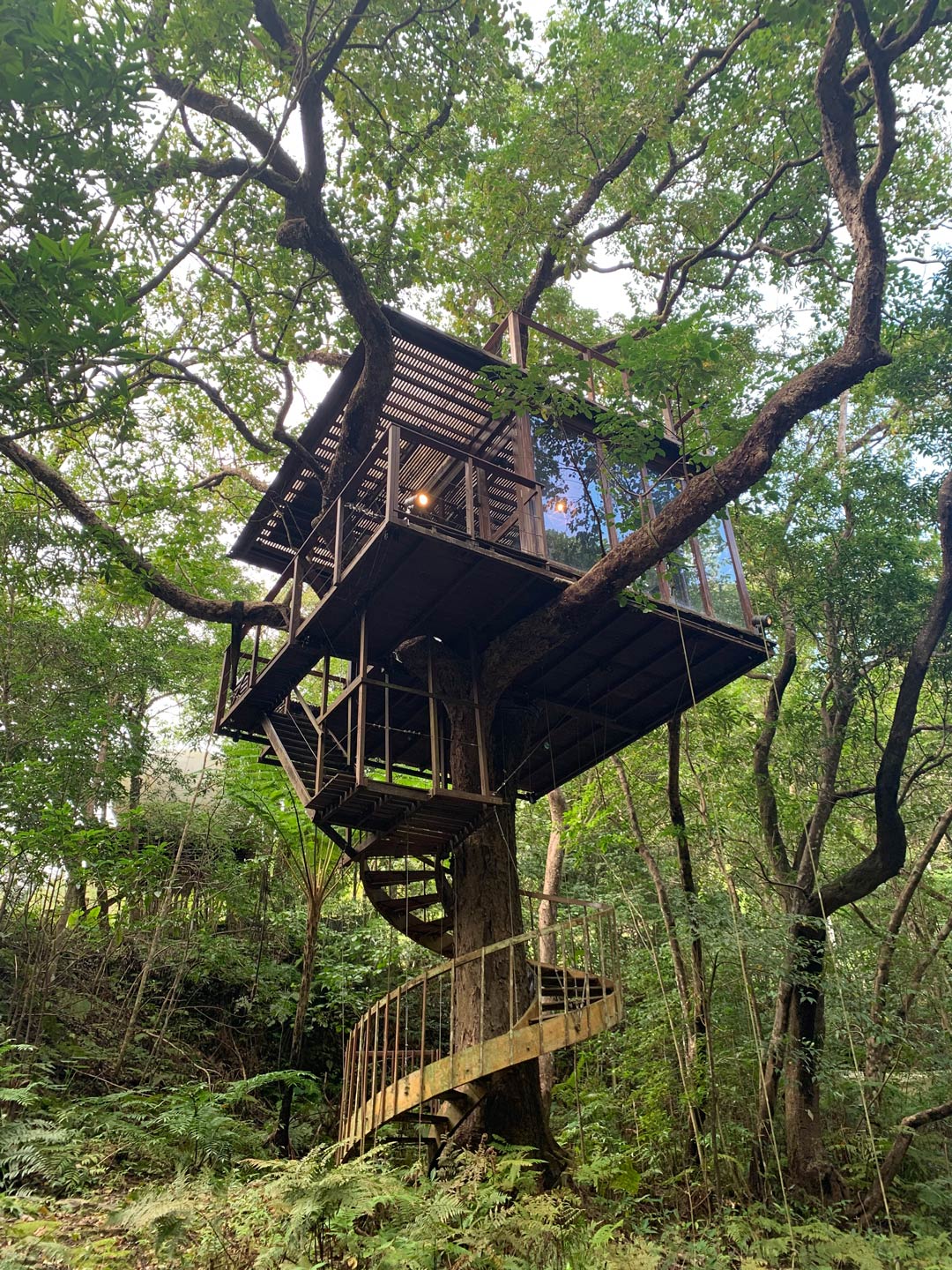 スパイラルツリーハウスには2人まで宿泊可能だ