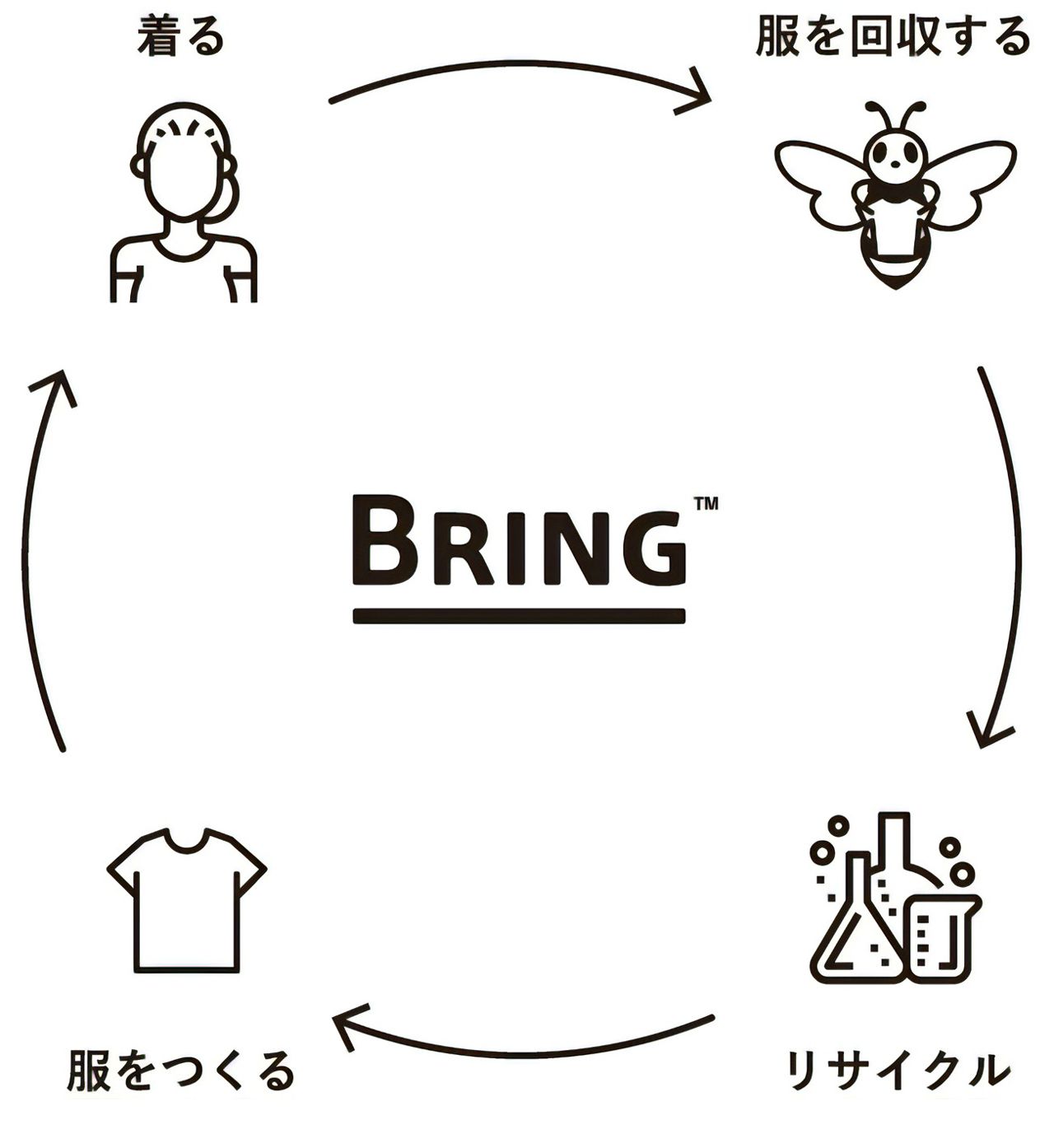 メーカー・小売り・消費者が協力し合いながら古着を回収してリサイクルし、資源循環を行う「BRING」の取り組み。