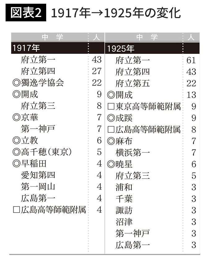 「第二次高等学校令の公布」(1918年)によってランキングから外れた独協(出典=『