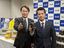 3月16日付で社長に就任するアサヒビールの松山一雄専務(写真左)=2020年2月5日、東京都千代田区