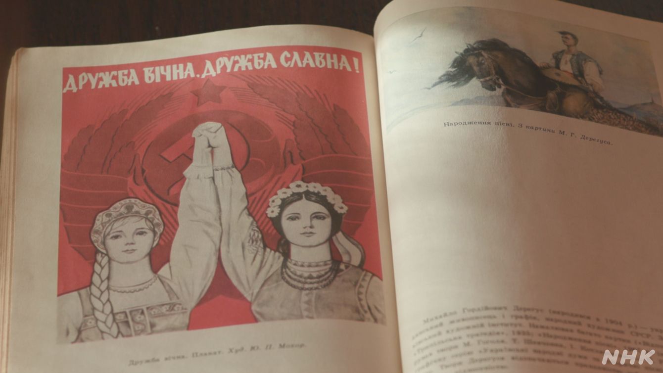 ソビエト時代のウクライナの国語の教科書。「ロシアとウクライナの友情は永遠」だという挿絵が