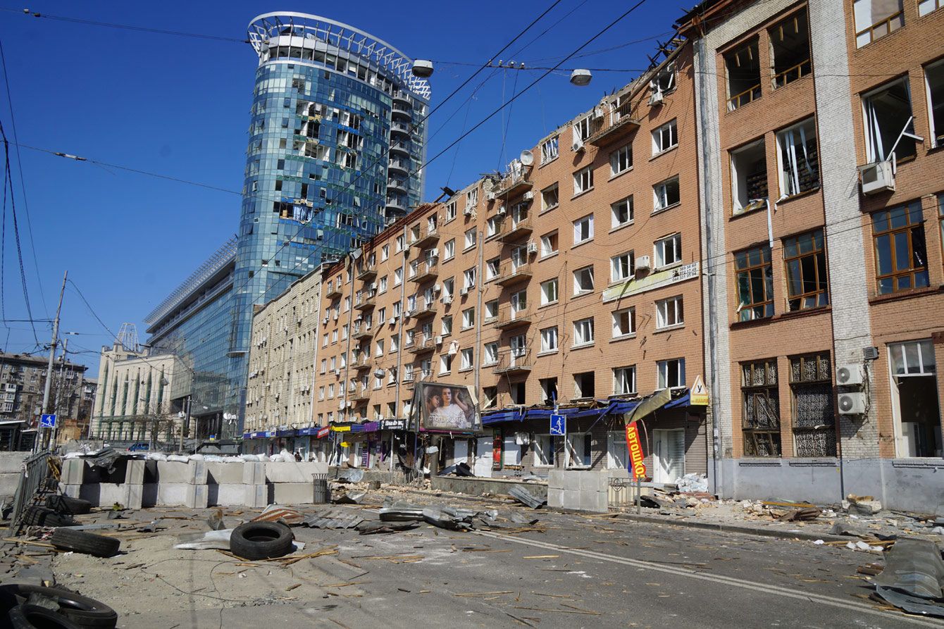 キーウ中心部の商業地域も破壊された(2022年3月19日)