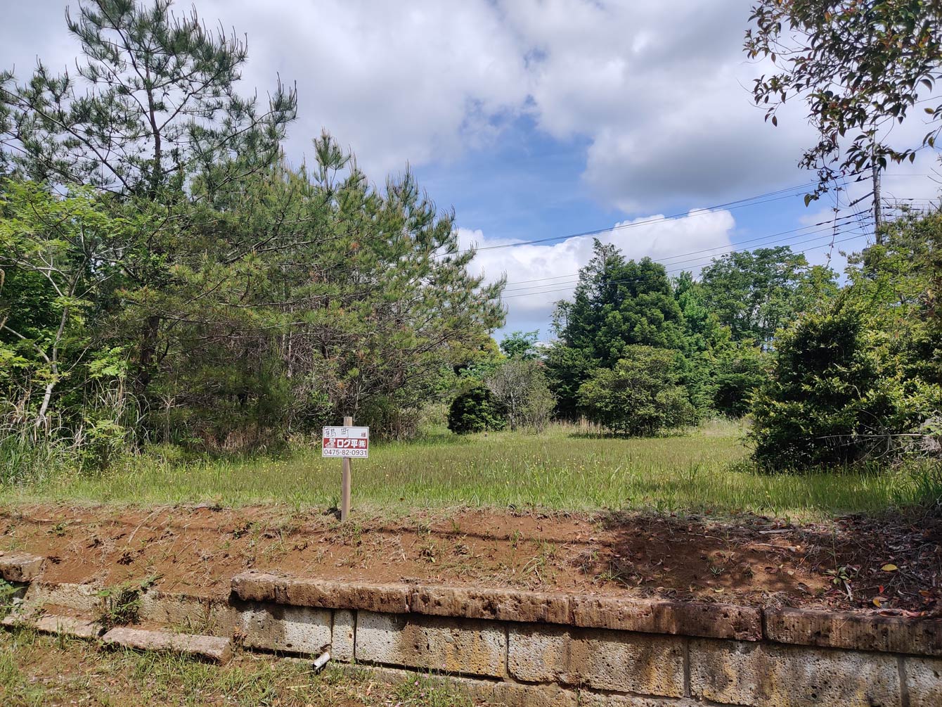 茂原市内に営業所を置く草刈り業者の看板。所有者の姓が記載され、「売地」の看板も並べて立てられている。この業者は自社サイトで物件情報を積極的に公開している会社のひとつ。(千葉県八街市八街は)