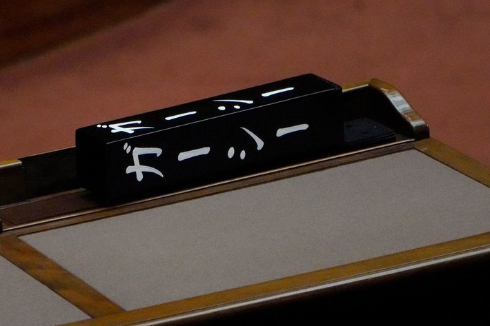 開会した国会を欠席したNHK党のガーシー(東谷義和)議員の氏名標=2023年1月23日、東京都千代田区