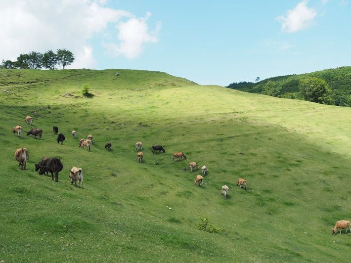 」の様子。牛たちはその日の好きな場所で野シバなどの野草をはむ。