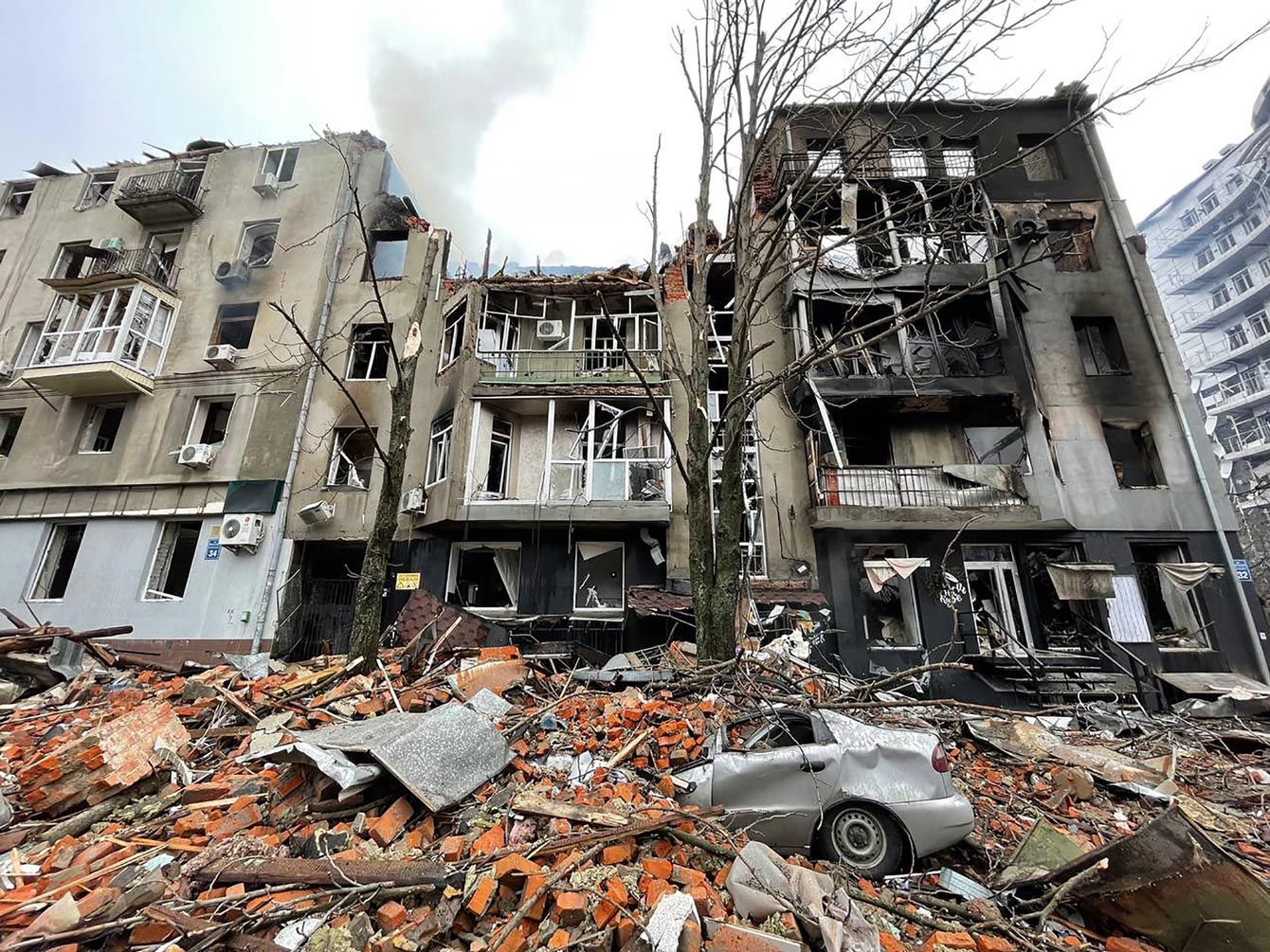 2022年3月3日、攻撃を受けたウクライナ・ハルキウの建物(写真=YuriiKochubey/
