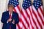 2023年4月4日、フロリダ州パームビーチのマール・ア・ラーゴで、「口止め料」支払い疑惑をめぐる出廷後の記者会見で発言した後、退出するドナルド・トランプ元米大統領。