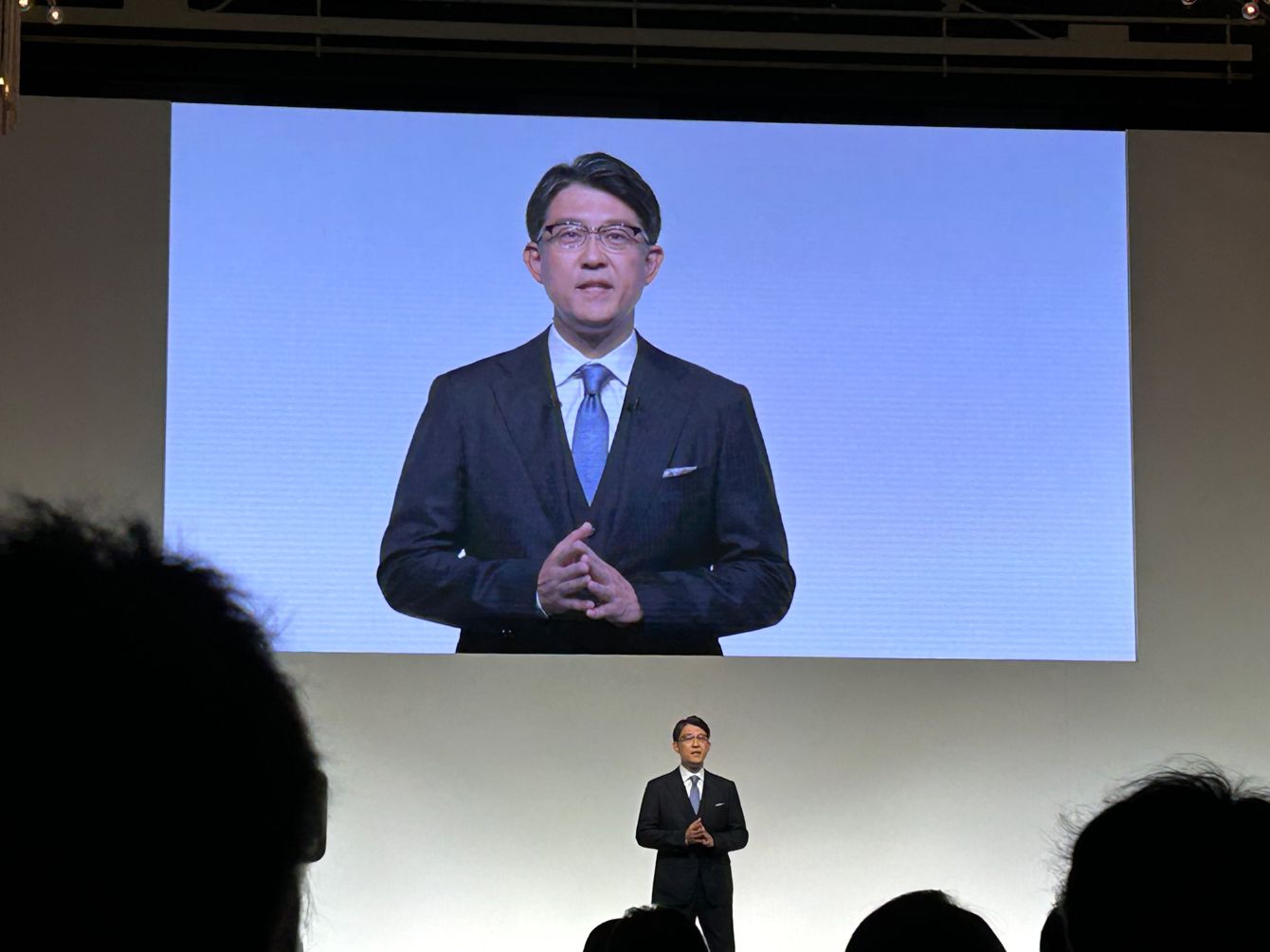 (左から)トヨタ自動車の宮崎洋一副社長、佐藤恒治社長、中嶋裕樹副社長。同社は4月7日に会見を開き、今後の経営方針を説明した