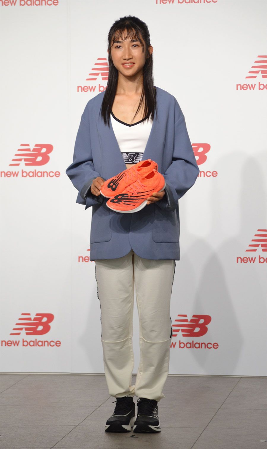 ニューバランスに所属し、プロランナーとして活動することを発表した田中希実=2023年4月3日、東京都内