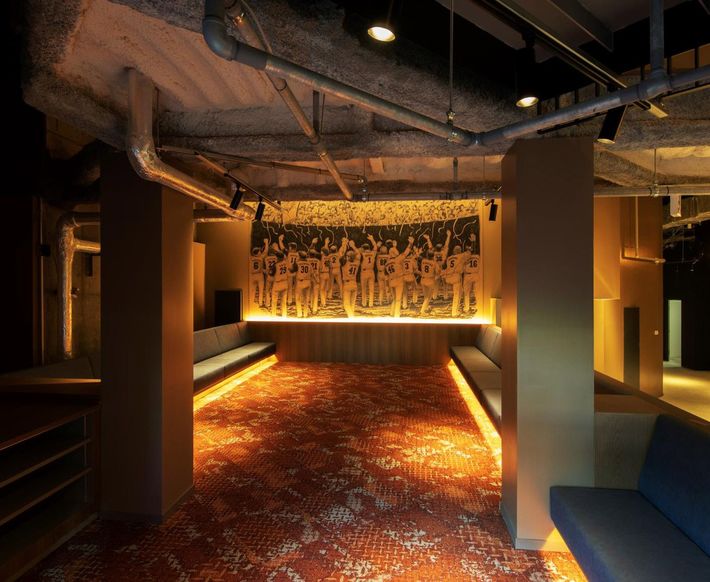 ダグアウトクラブラウンジの壁画。2016年のファイターズ優勝のオマージュとして描かれた