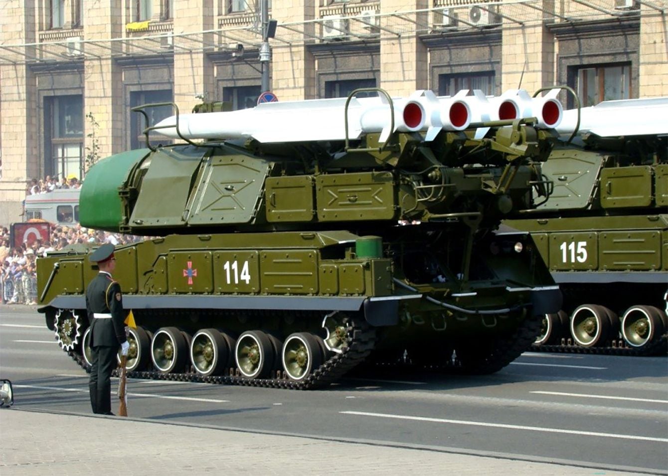 2008年、ウクライナのキエフで行われた独立記念日のパレードに参加した9K37「ブーク」中・低高度防空ミサイルシステム(写真=Віталій/CC-BY-4.0/Wikimedia Commons)