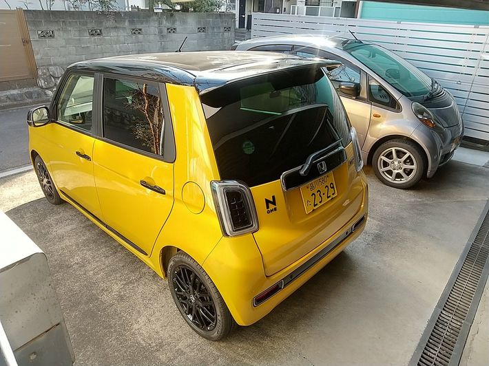 三菱アイ(奥)の代替車になるだろうか。ホンダN-ONEのリア(手前)