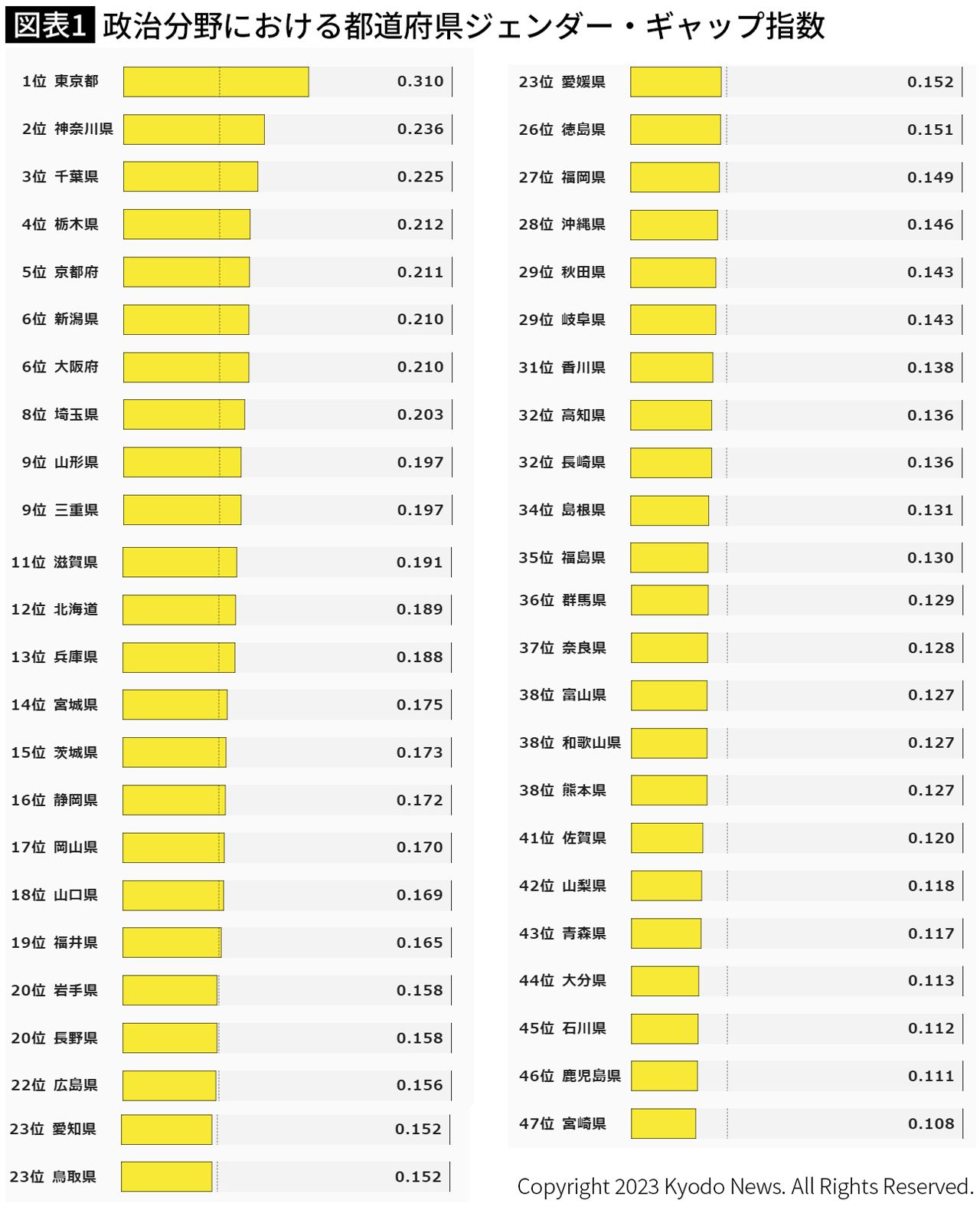 」より(指数監修:三浦まり、統計処理:竹内明香上智大経済学部准教授、共同通信社)、2023年3月発表