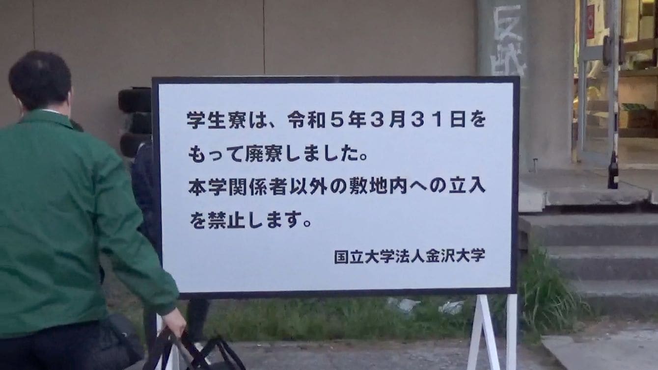 金沢大学泉学寮で廃寮作業をする大学職員(2023年3月31日)