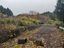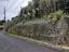 入口の階段まで雑草に埋もれた擁壁上の放棄区画。すぐに利用可能な更地でも損ねである限界分譲地において、多額の工事費用を要する擁壁は大きなマイナス要素となり、極端に流動性が悪くなる。(千葉県成田市津富浦)
