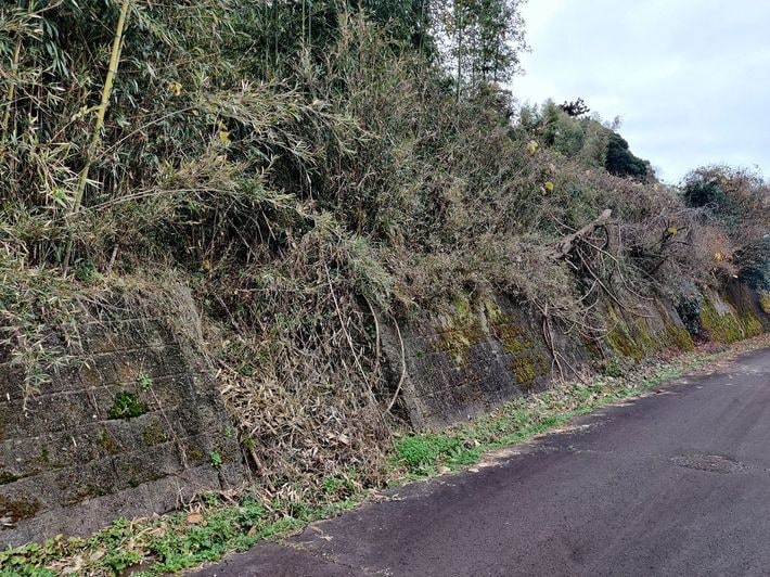 土地の放置は、擁壁の破壊を引き起こすこともある。(千葉県山武市雨坪)