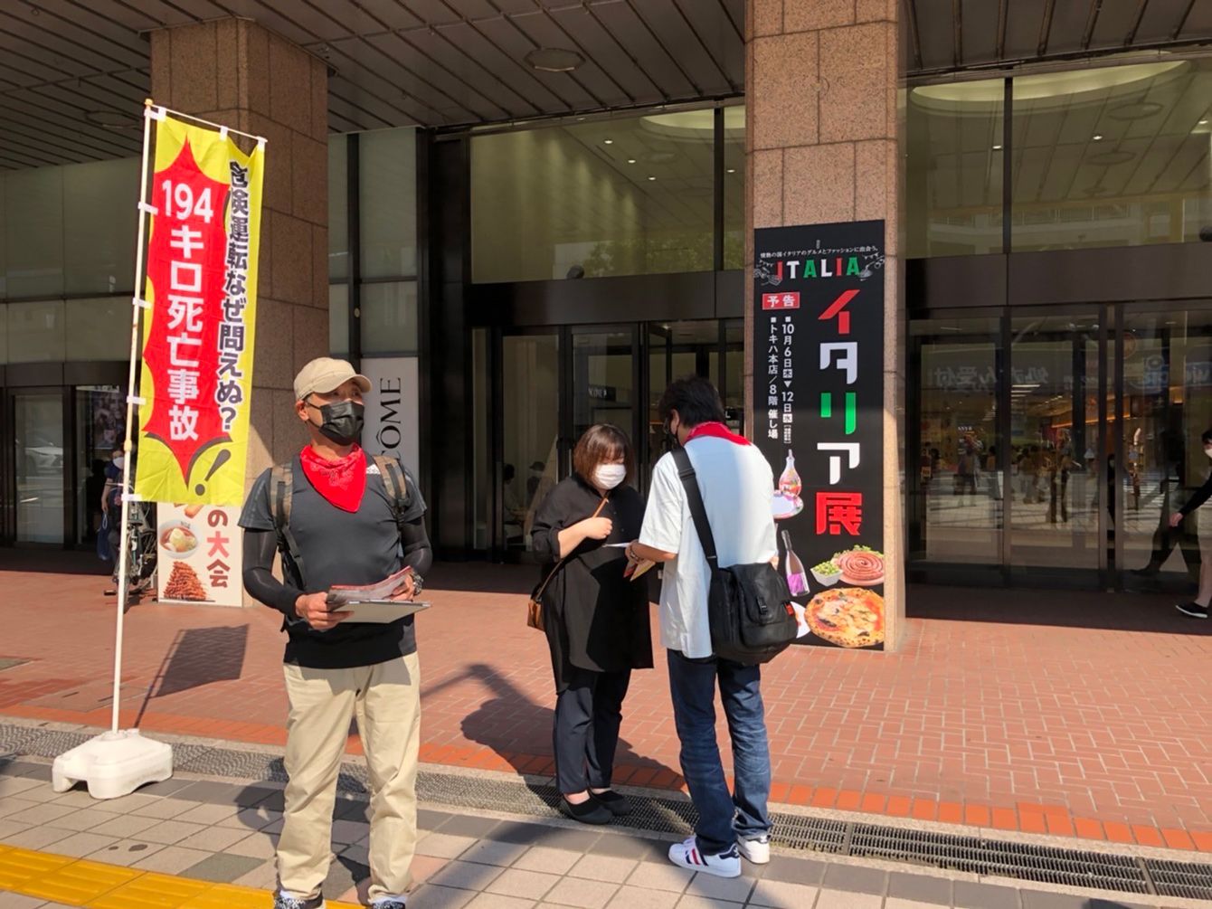 「時速194キロの死亡事故がなぜ過失なのか?」遺族は支援者らと街頭署名を行い、検察庁に危険運転での起訴を要請した。