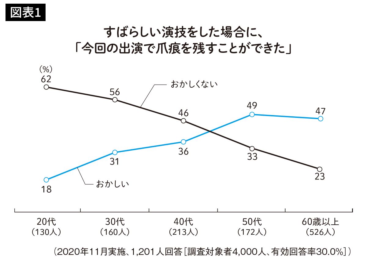 「今回の出演で爪痕を残すことができた」という表現についての各世代の回答(出所=『