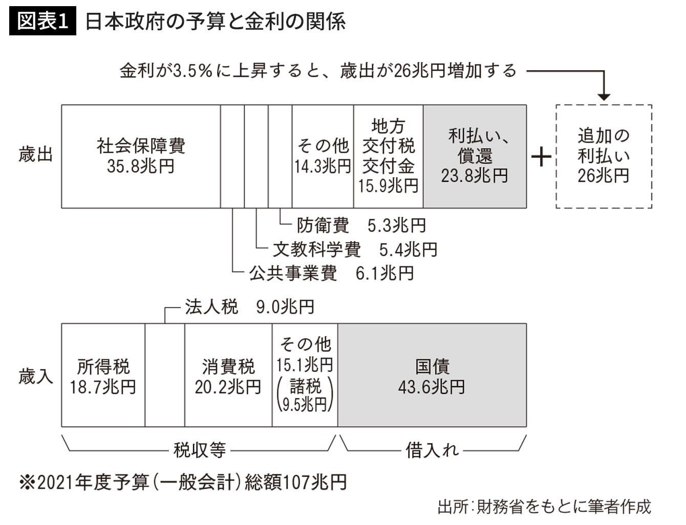 金利が3.5%に上昇すると、政府の歳出が26兆円も増える(出典=『