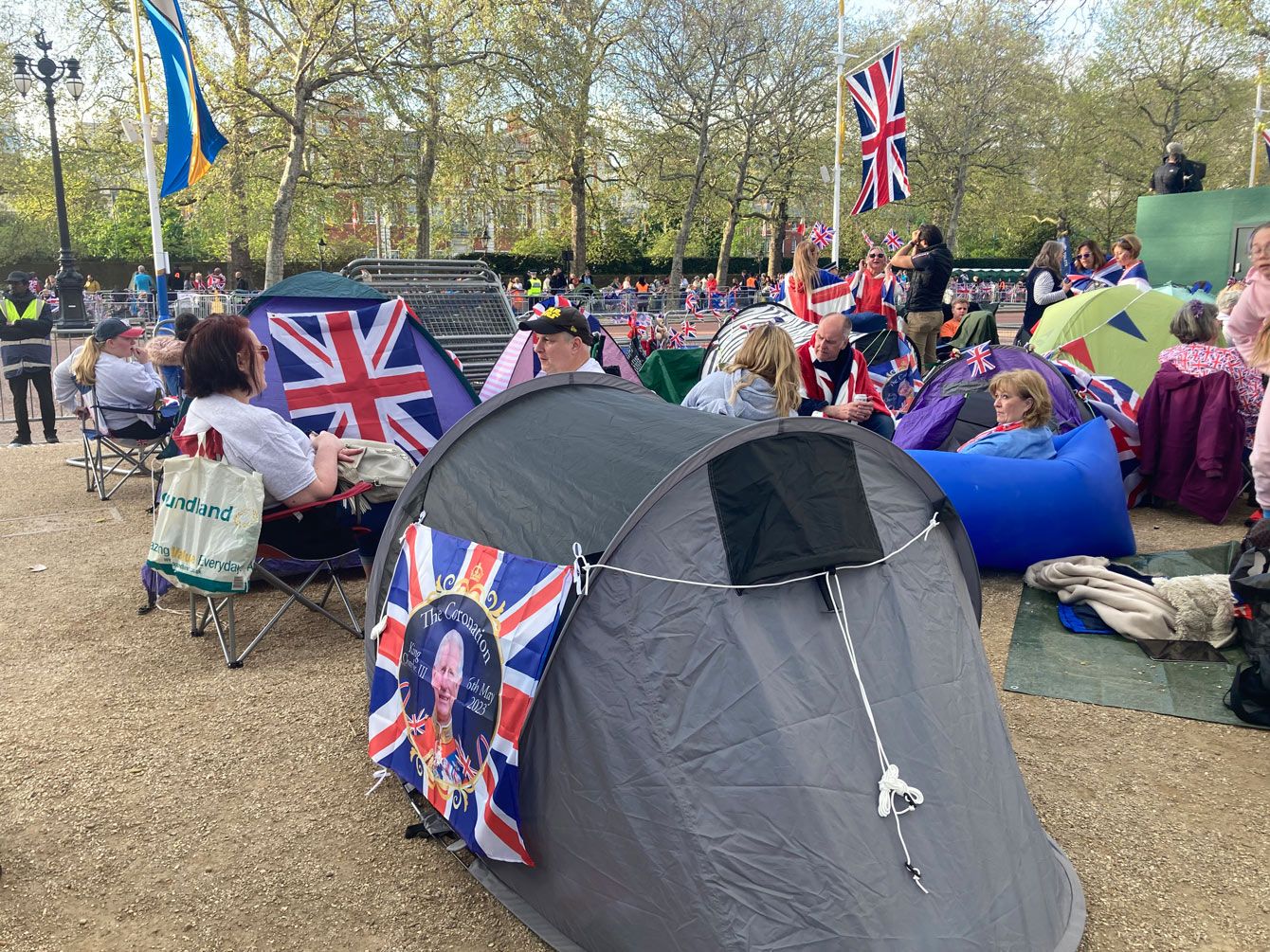 宮殿から寺院までの沿道でパレードを一目見ようとテントを張って待つ人々
