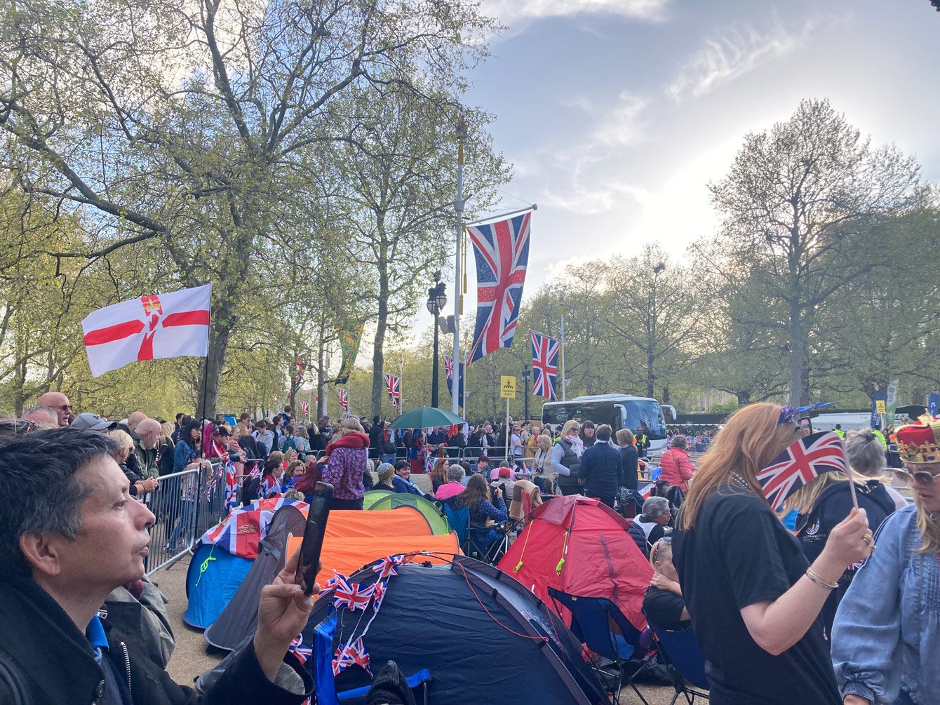宮殿から寺院までの沿道でパレードを一目見ようとテントを張って待つ人々