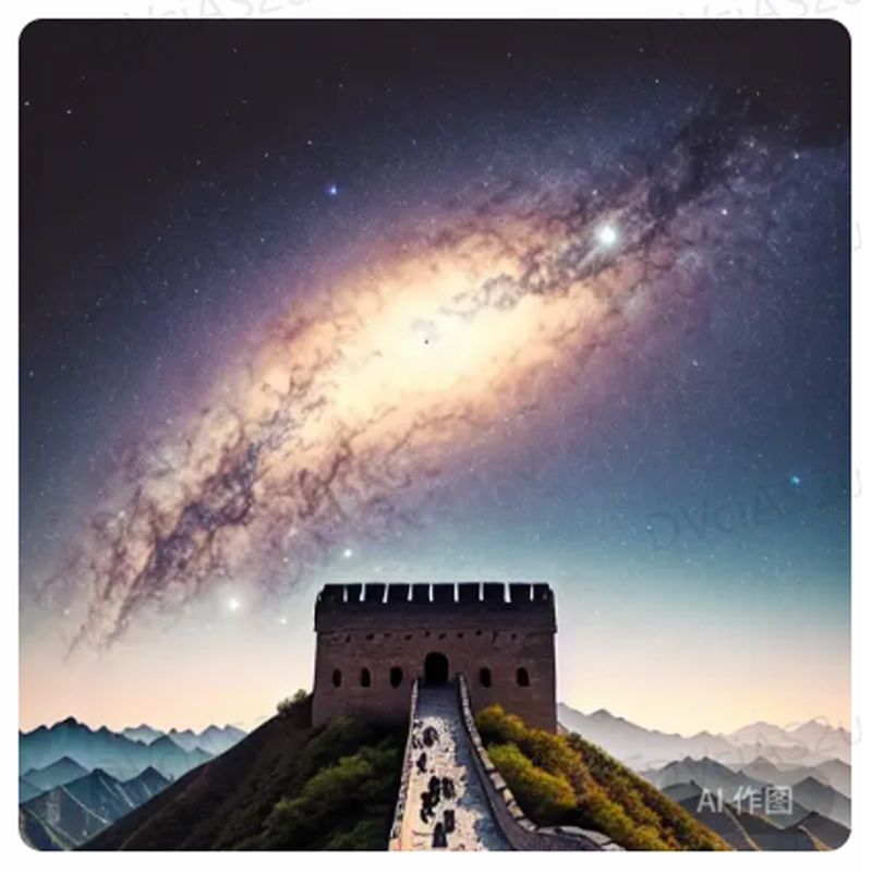 米マイクロソフトの「Bing Image Creator」に生成させた「宇宙から見た万里の長城」。こちらは指示を的確に理解している