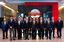 半導体受託製造の世界最大手、TSMC(台湾積体電路製造)本社で記念撮影に応じる、熊本市の大西一史市長(前列右から2人目)、熊本県の蒲島郁夫知事(同3人目)、廖永豪TSMC副社長兼JASМ会長(同4人目)ら=2023年1月12日、台湾・新竹[熊本県提供]