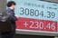 3万800円台の日経平均株価を示すモニター=2023年5月19日午前、東京都中央区