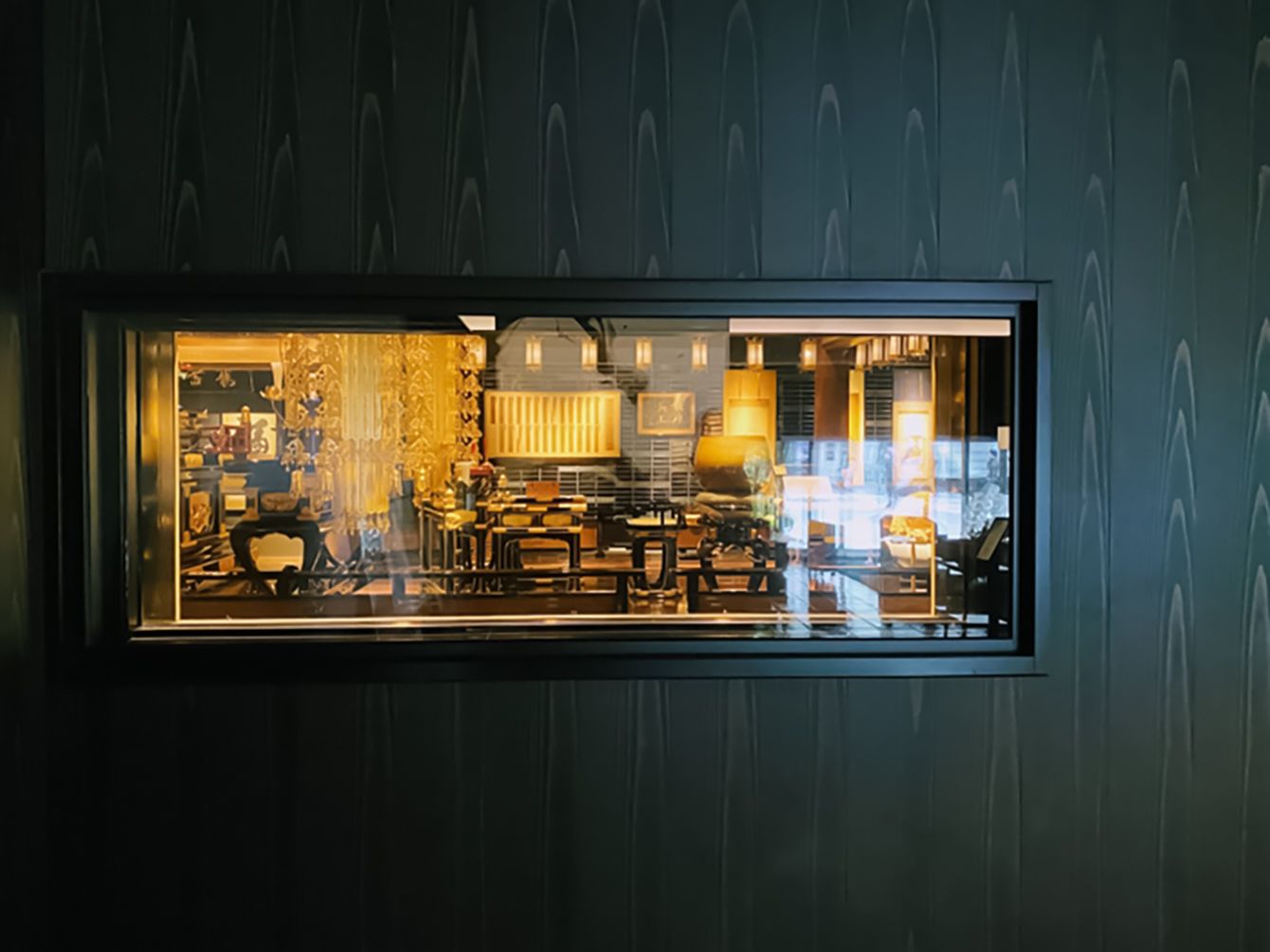 ロビーの窓からは本堂がのぞける