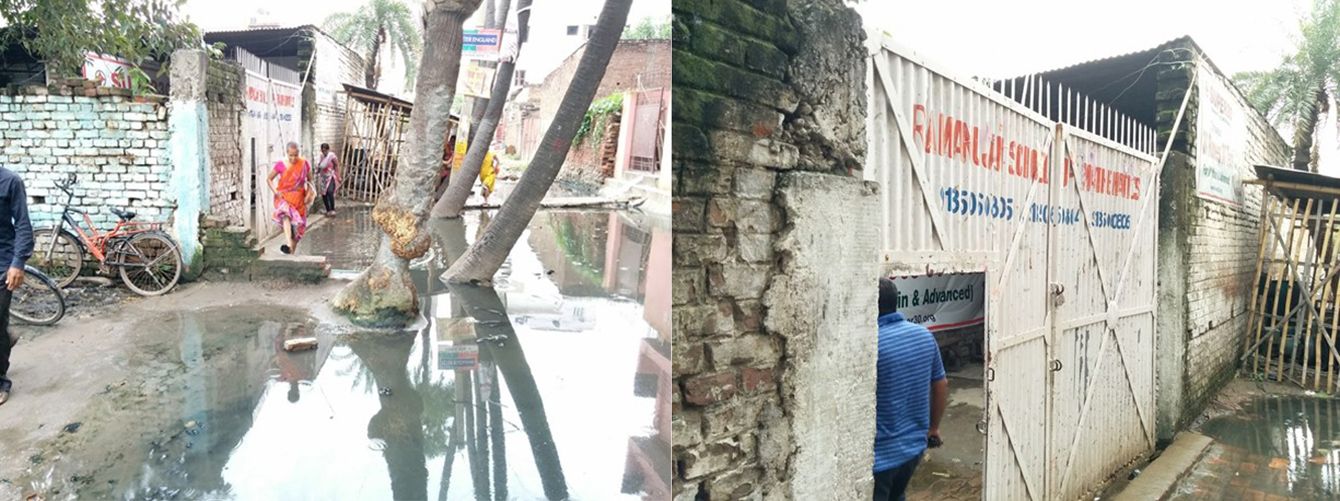 ラマヌジャン数学塾の入り口の様子。雨季になると一帯が水浸しになる