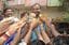 IITの合格発表を受け、歓喜するSuper 30の生徒たちとアナンド・クマールさん(中央)