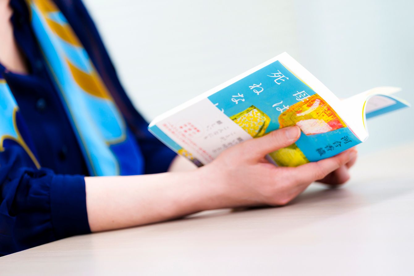 書籍を手に取りながら内容について語る河合さん