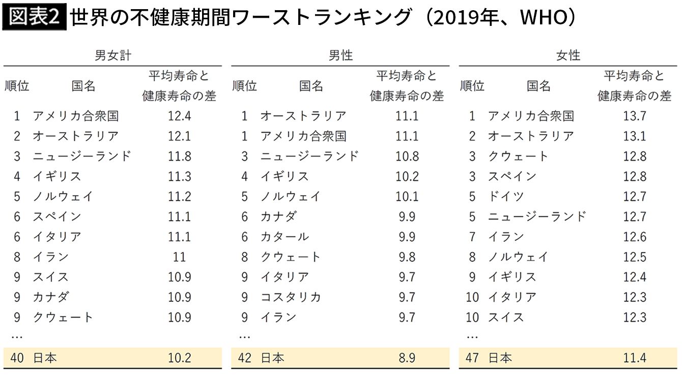 日本は「平均寿命」も「健康寿命」も世界一長い…では"不健康期間"ワーストランキングの順位は?