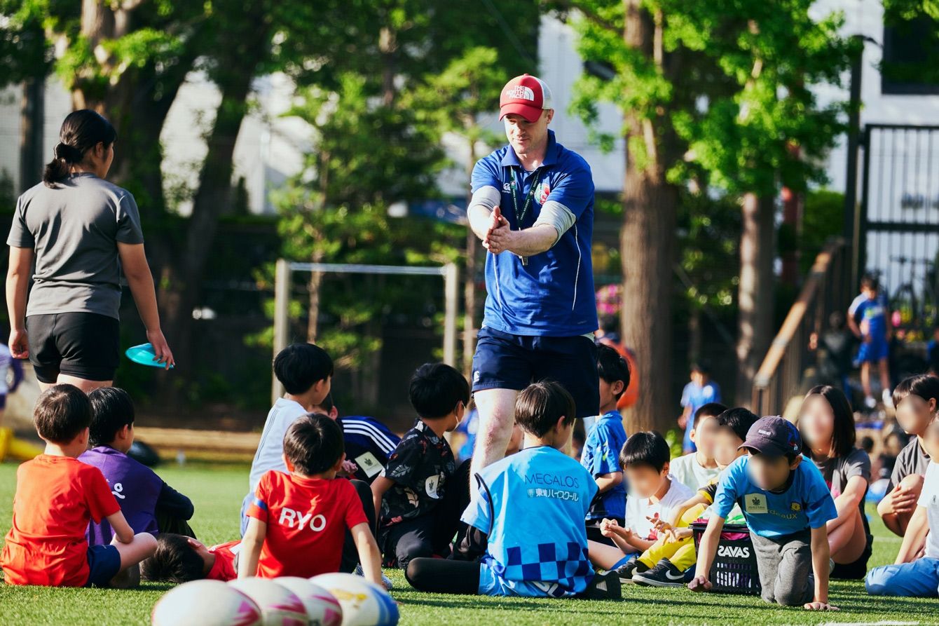 マルバーン体験会でラグビーを教わる参加者たち(2023年5月20日)。